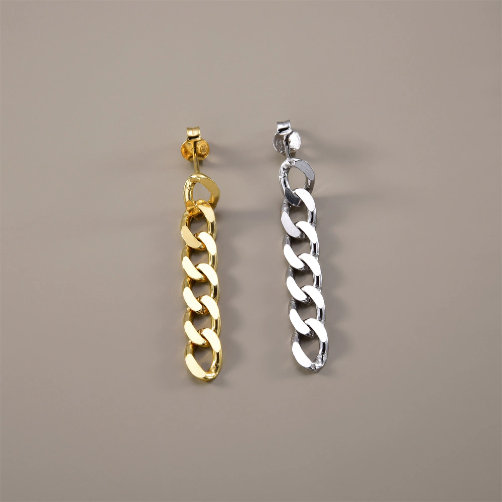 Brinco com 6 elos da corrente Grumet com acabamento em ródio branco de um lado e outro em ouro 18k. Acabamento do metal em banho de Ródio e Ouro 18k