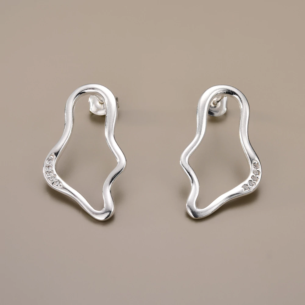 Detalhes: Brinco de prata lisa orgânico vazado com zircônias brancas cravejas
