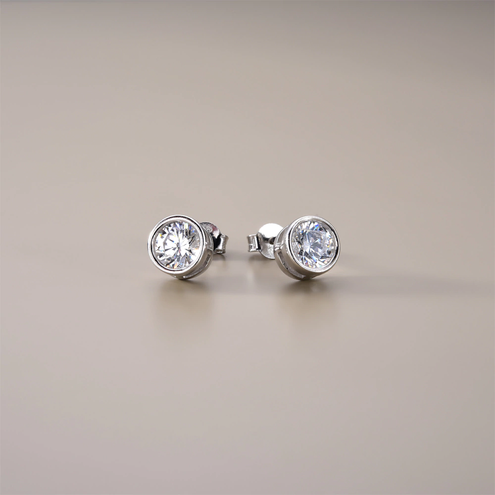 Detalhes: Brinco de prata com pedra cravejada. Acabamento do metal em banho de Ródio