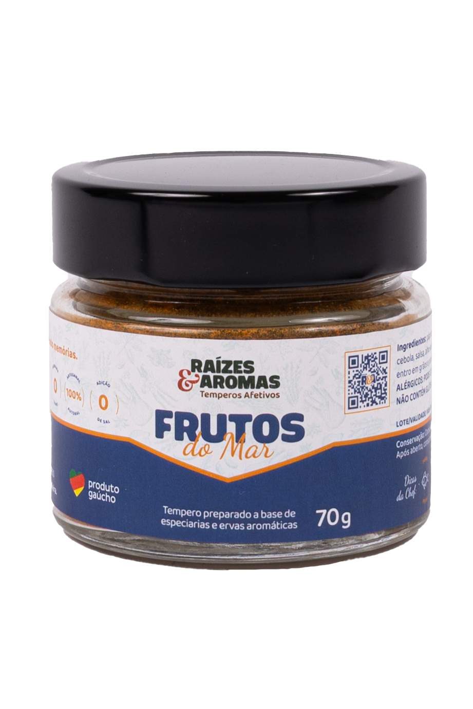 O tempero Frutos do Mar foi criado para realçar o sabor natural de peixes, camarões e frutos do mar com equilíbrio e sofisticação. Um blend autoral que combina páprica doce, cúrcuma, alho, cebola, salsa, alho-poró, limão, cominho, coentro em grãos e pimenta calabresa. Aromático na medida certa, entrega profundidade de sabor sem sobrepor o ingrediente principal, garantindo preparos mais elegantes, práticos e cheios de identidade