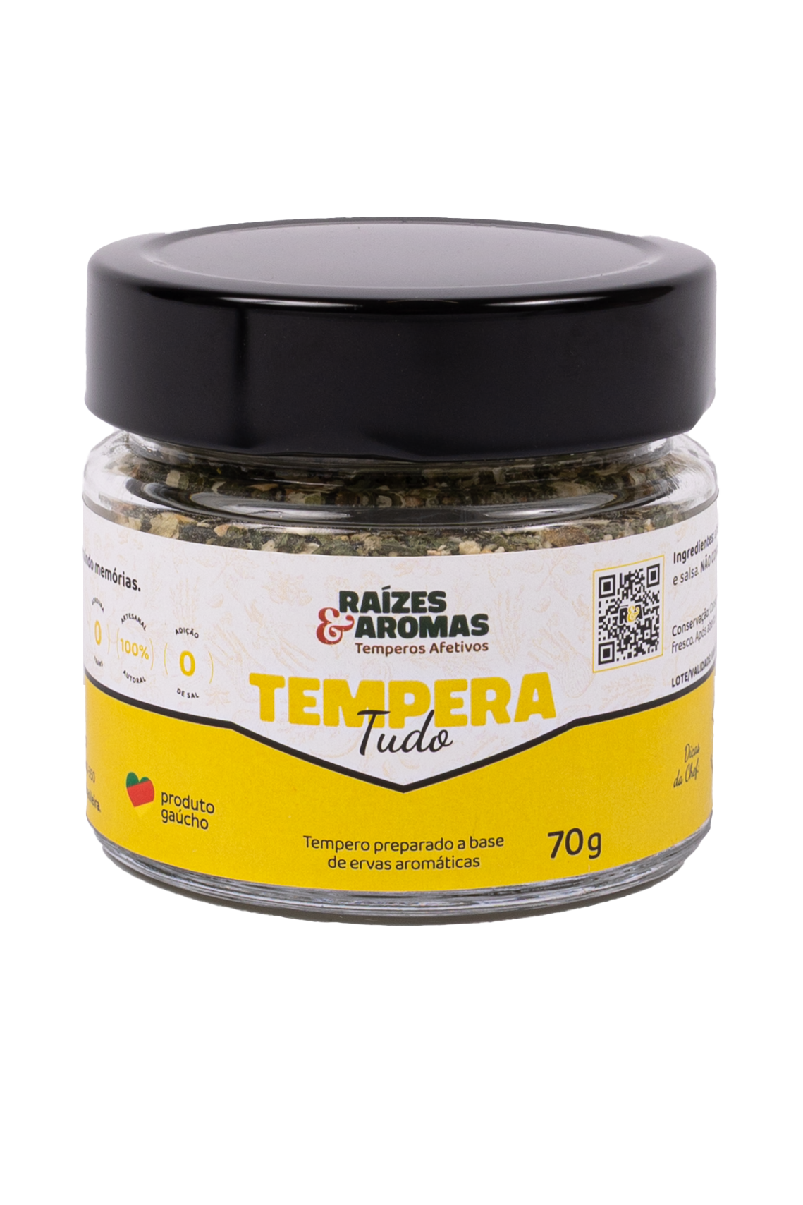 O Tempera Tudo Raízes & Aromas é um blend artesanal e autoral criado para quem busca praticidade, sabor e qualidade em todas as receitas. Elaborado com alho, cebola, cebolinha e salsa, é extremamente versátil e equilibrado, valorizando o sabor natural dos alimentos sem sobrepor ingredientes. Ideal para o uso diário, combina perfeitamente com carnes, legumes, arroz, massas, ovos, molhos e saladas. Um tempero essencial na cozinha, feito para ser usado sem moderação.