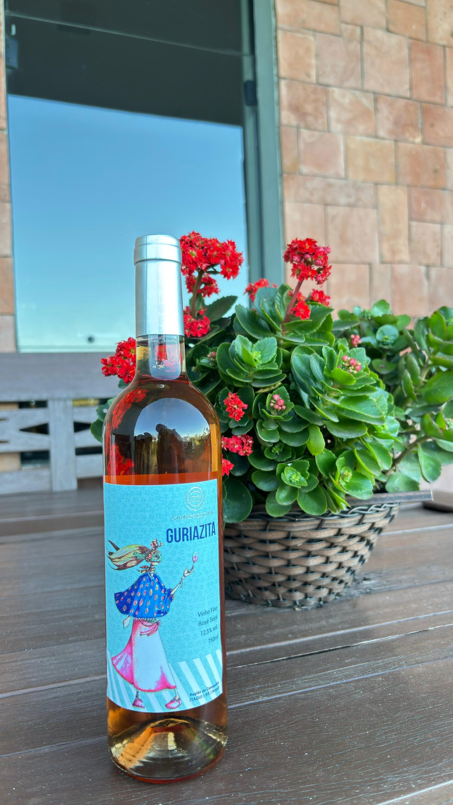 Guria elegante, de aparência risonha e que gosta de se enfeitar. Inspirada nas nossas gaúchinhas que expressam alegria. Rótulo desenvolvido em parceria com o artista Felipe Constant que retrata essa guriazita faceira. É um rosé jovem, fresco, elegante, que encanta desde a aparência ao seu gosto final.